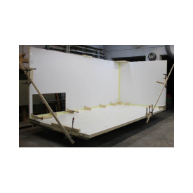 Aufbau aus GFK-Sandwich mit einlaminierten Stufenprofilen bei Eingangstüre und Klappen.